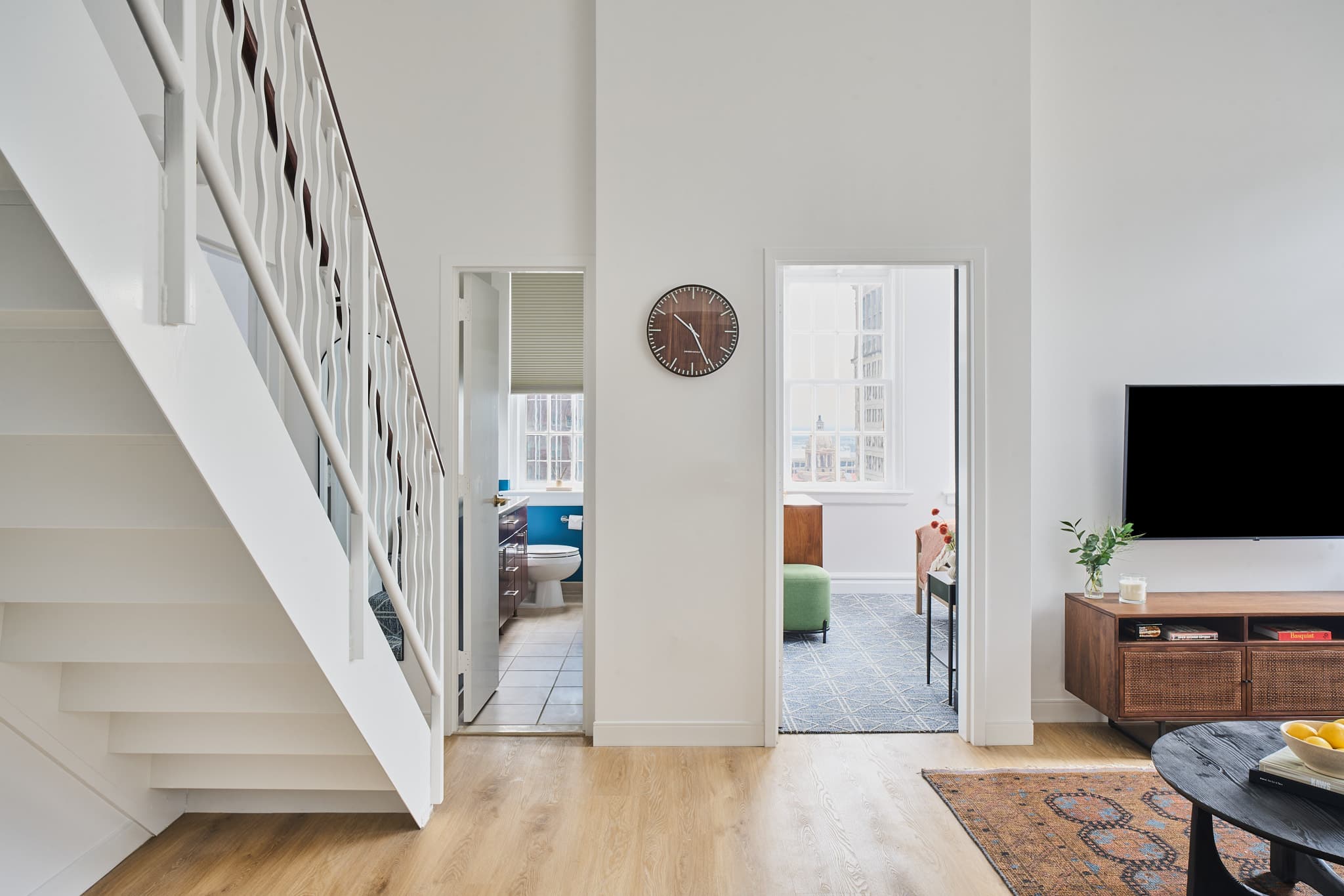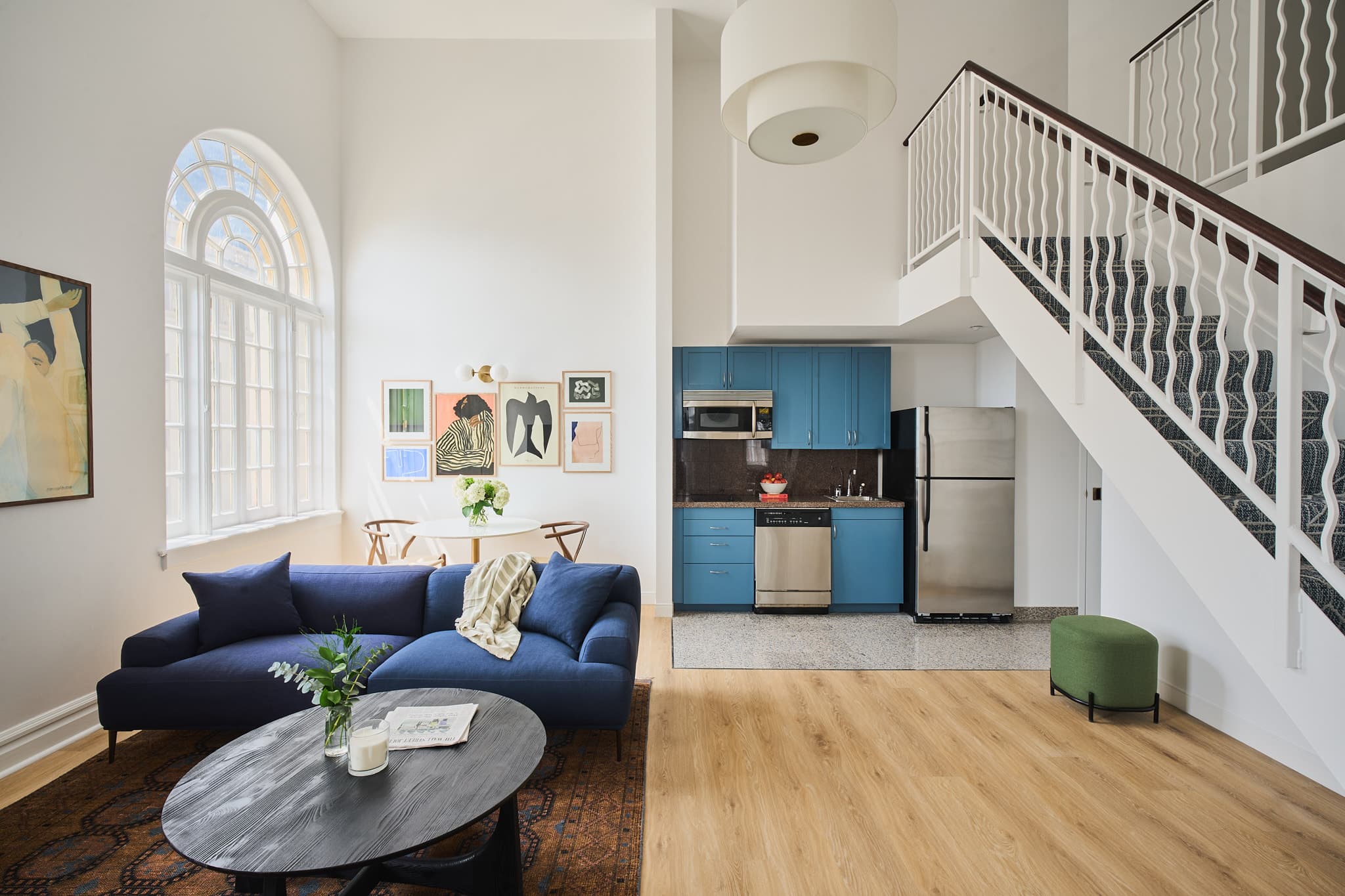 Sleeps 6 | 1100 sq ftWhether you’re traveling for business or pleasure, the Two-Bedroom Loft Apartment at Rusk House is both comfortable and stylish. This spacious Houston apartment is carefully decorated and stocked with indulgent amenities. The full kitchen features a Nespresso machine, making mornings easier to deal with, alongside everything you need to cook a delicious meal.